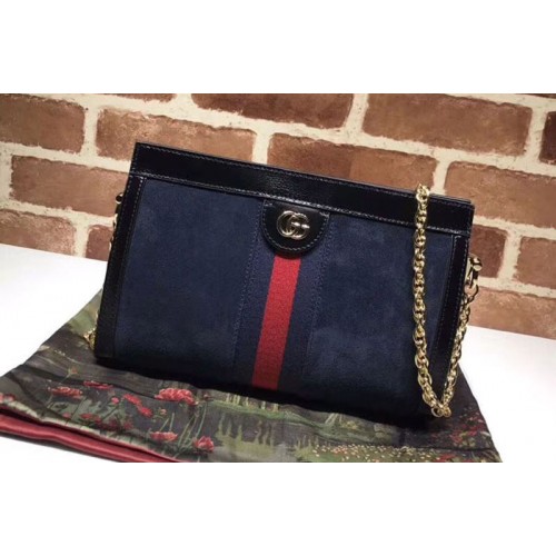 Gucci 503876 Ophidia Medium Suede Shoulder Bag Blue