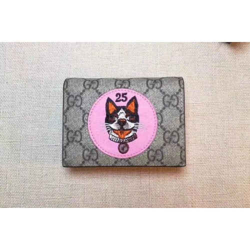 Gucci 506277 GG Supreme card case with Bosco patch Pink