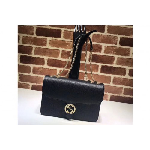 Gucci 510303 Interlocking GG Leather Crossbody Bags Black