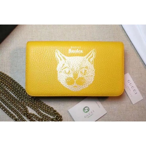 Gucci 521552 Original Calf leather Mini cross-body clutch With Cat Yellow