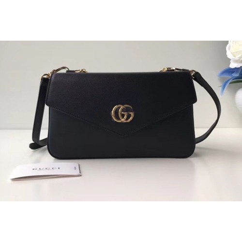 Designed with a versatile, double construction, this precious shoulder bag sports two different looks, allowing a whole range of eclectic combinations. An archival reprisal of the House’s signature emblem, the Double G stands against a red leather base, while a roaring feline head, painted with colored enamel and encrusted with sparkling crystals and two stones at the eyes, illuminates the other side. Crafted in black leather and animated by a gold Double G stripe pattern.