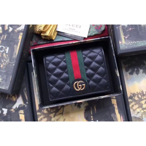 Gucci 536453 Leather card case with Double G Black Quilted leather