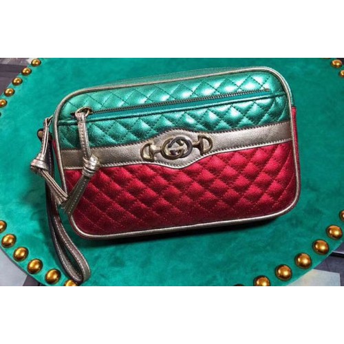 Gucci 540985 Laminated Leather Clutch Bag Green and Red