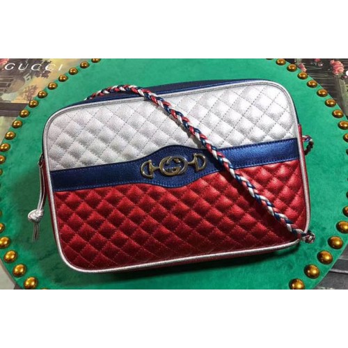 Gucci 541061 Laminated Leather Small Shoulder Bag Red And White