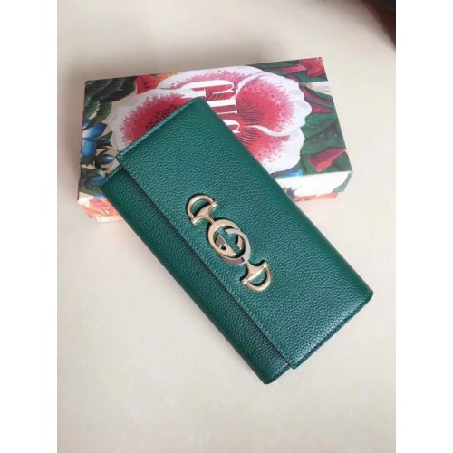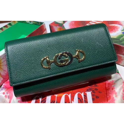 Gucci 573612 Zumi grainy leather continental wallet dark green grainy leather