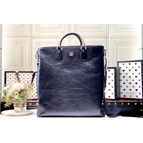 Gucci 575821 Soft leather tote Bags Black/Blue soft leather