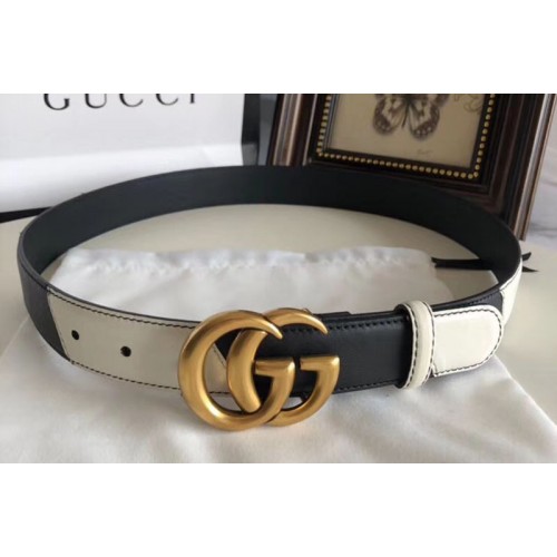 Gucci 582348 30cm Leather belt with Double G buckle Black and White Leather