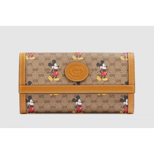 Gucci 602530 Disney x Gucci continental wallet in Beige/ebony mini GG Supreme canvas