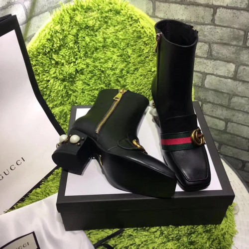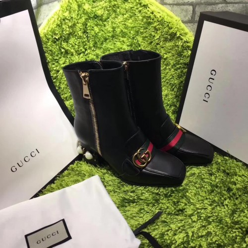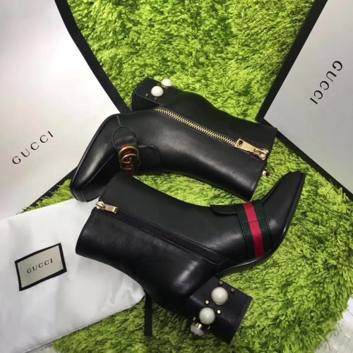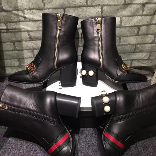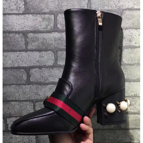 Gucci 7CM Mid-heel Glass Pearl Studs Detail Ankle Boot 432060 Black 2017
