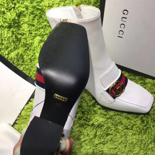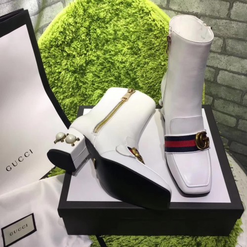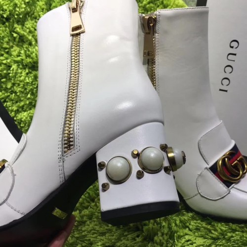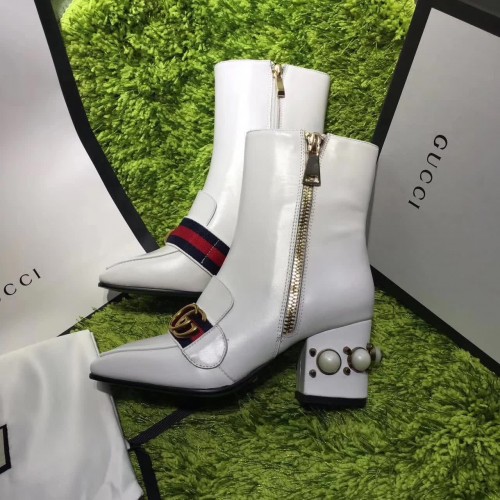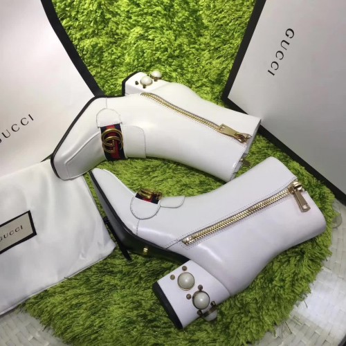 Gucci 7CM Mid-heel Glass Pearl Studs Detail Ankle Boot 432060 White 2017