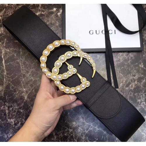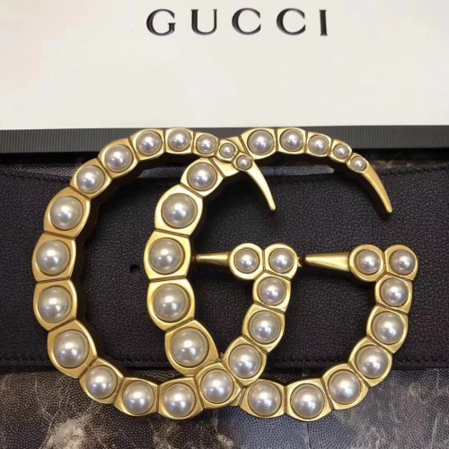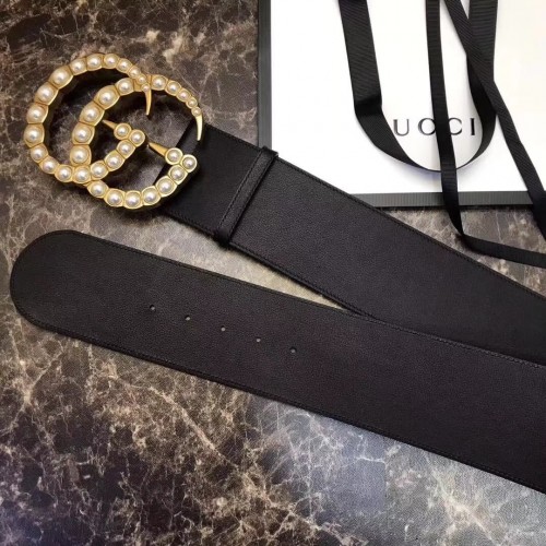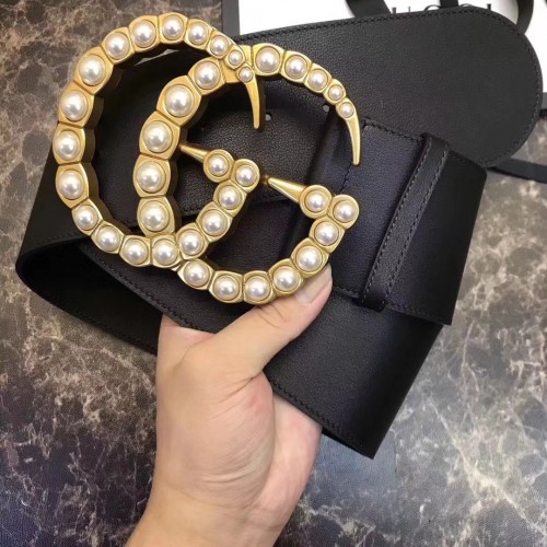 Gucci 7cm Wide Leather Belt With Pearl Double G