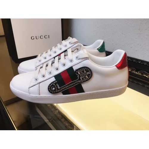 Gucci Ace Clip embroidered low-top sneaker white leather(GD5027-721304)