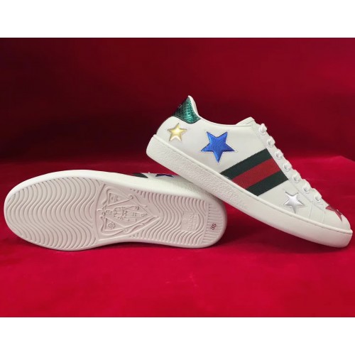 Gucci Ace Embroidered With Inlaid Multicolor Stars Sneaker 454562 2017