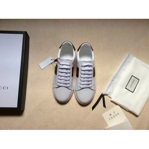 Gucci Ace Leather Embroidered Feline Head Low-top Sneaker 457132 White