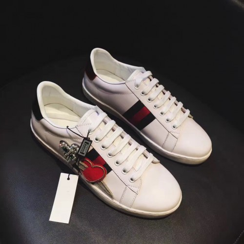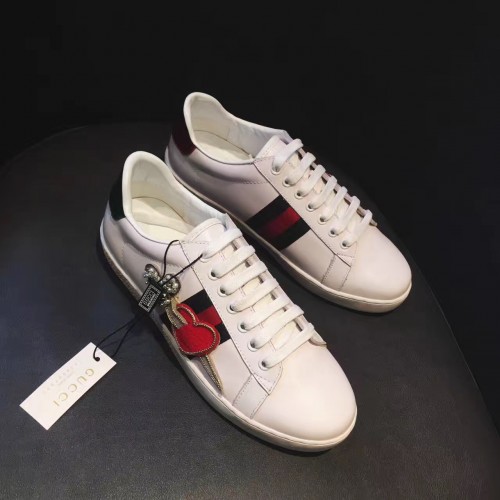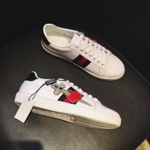 Gucci Ace Leather Embroidered Pierced Heart Low-top Sneaker 472990 White