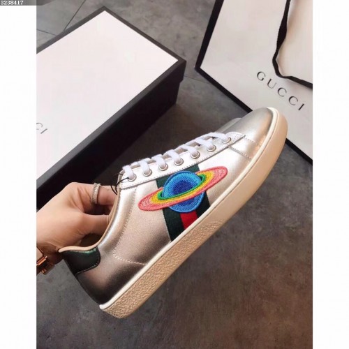 Gucci Ace Leather Low-Top Lovers Sneakers Comet Embroidered Sliver 2018