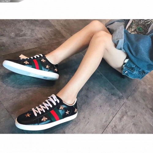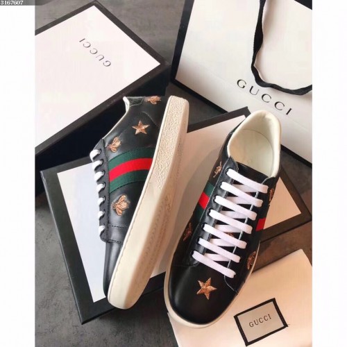 Gucci Ace Leather Low-Top Lovers Sneakers Green/Red Web Embroidered Bee Black 2018