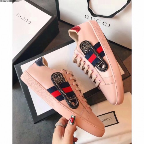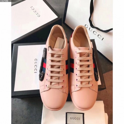 Gucci Ace Leather Low-Top Lovers Sneakers Web Crystal Embroidered Safety Pin Pink 2018
