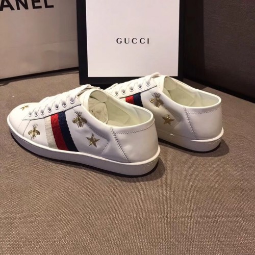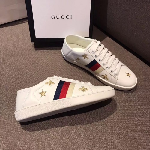 Gucci Ace Leather Low-Top Lovers Sneakers Web Embroidered Bees and Stars White 498205