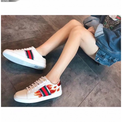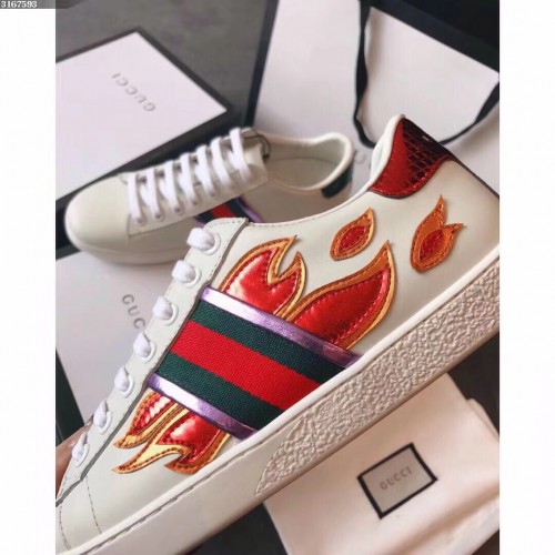 Gucci Ace Leather Low-Top Lovers Sneakers Web Flames Off White 2018