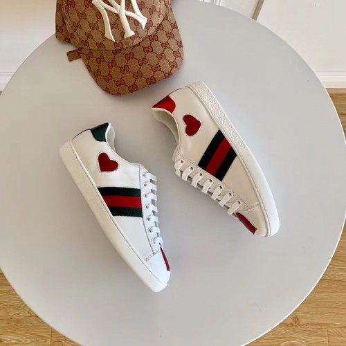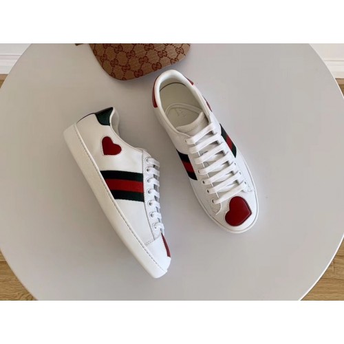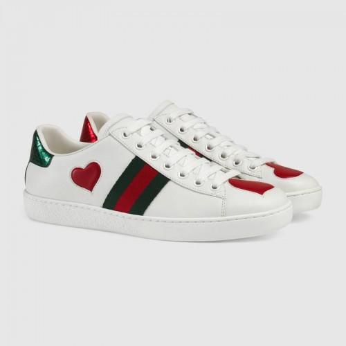 Gucci Ace Leather Low-Top Lovers Sneakers Web Heart Creamy 435638