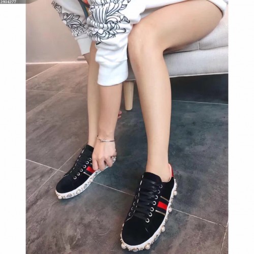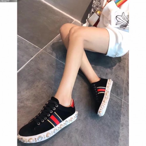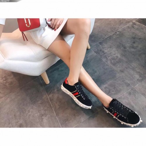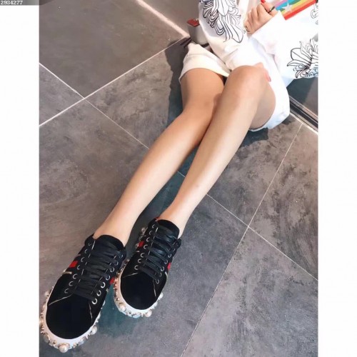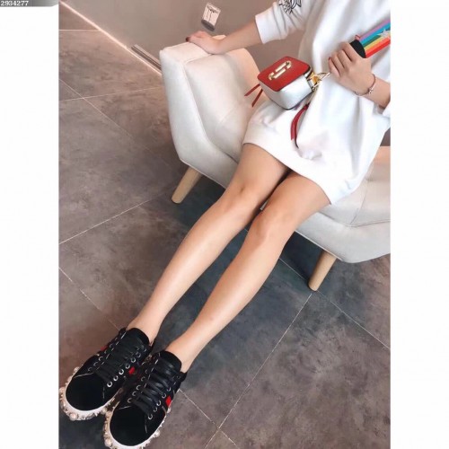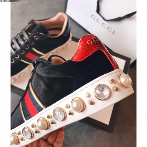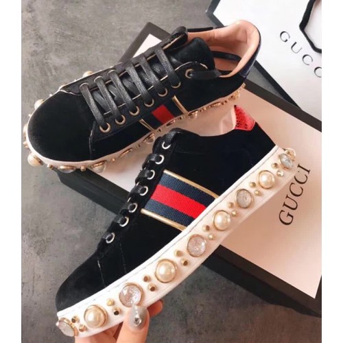 Gucci Ace Leather Studded And Pearl Velvet Sneakers Black 2017
