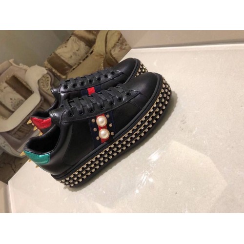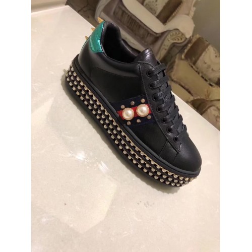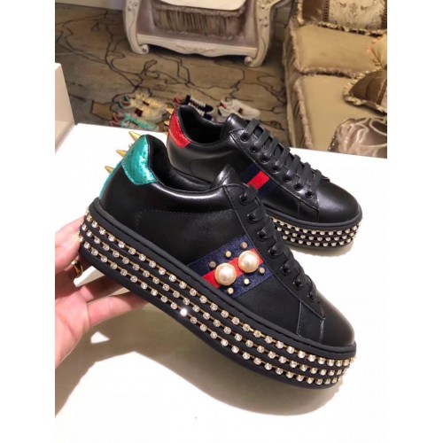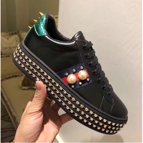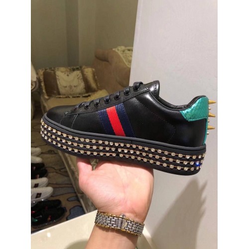 Gucci Ace Sneaker Pear Trim With Crystals Black 2017