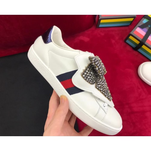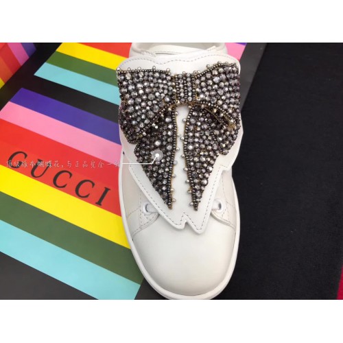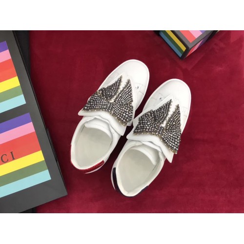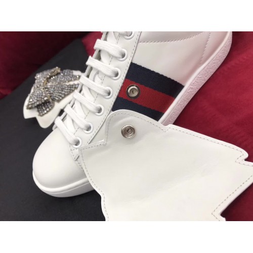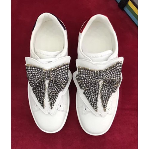 Gucci Ace Sneaker With Removable Crystal Bow 470342 White 2017