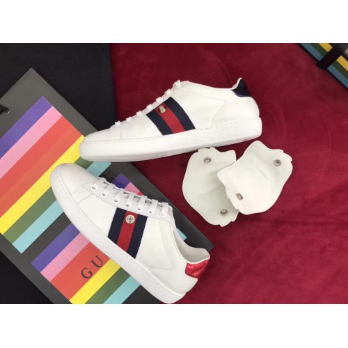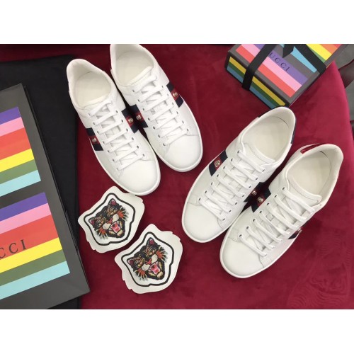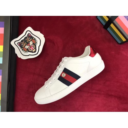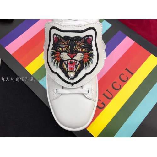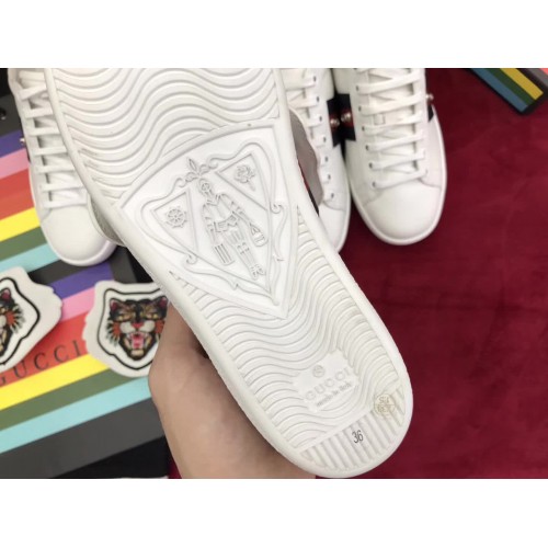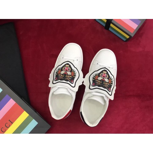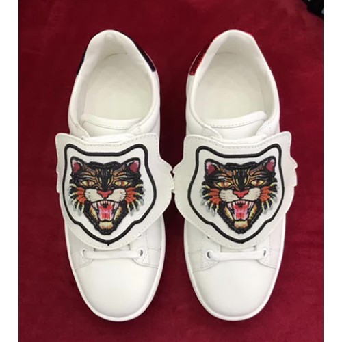 Gucci Ace Sneaker With Removable Embroidered Angry Cat Patch 478190 White 2017