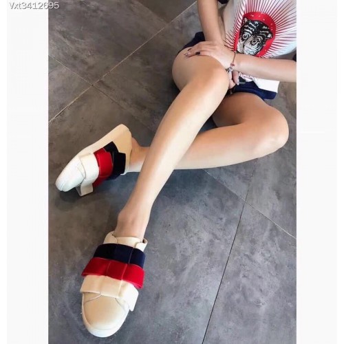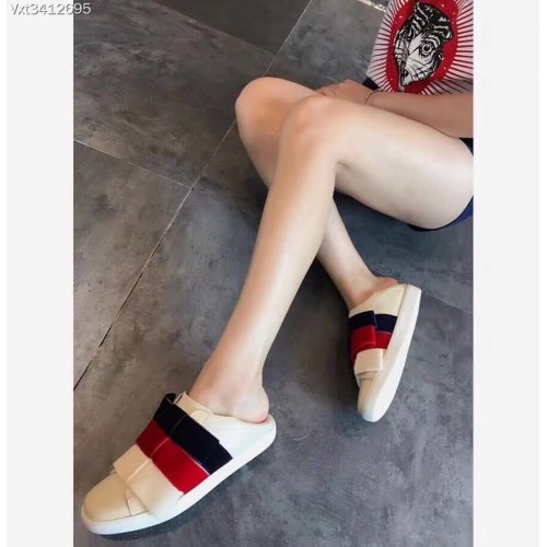 Designed in a slip-on silhouette for Pre-Fall 2018, the 70s inspired Ace sneaker is enriched with delicate elements reflecting the House's romantic narrative. In blue, white and red, the color combination of the Sylvie Web, three velvet bows wrap around the shoe, contrasting a white leather base.