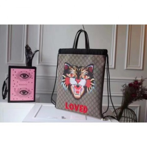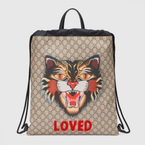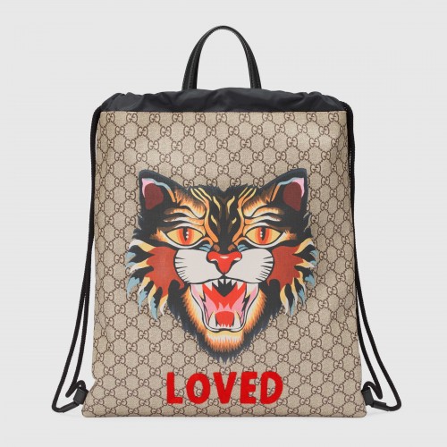 Gucci Angry Cat Soft GG Supreme Drawstring Backpack