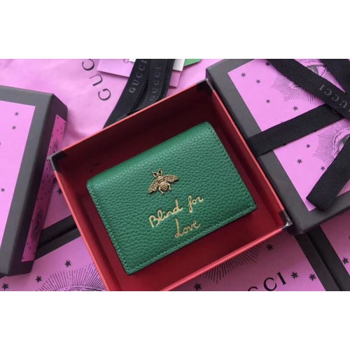 Part of the Animalier collectsion, the leather card case features the distinctive metal bee detail and the phrase “Blind for Love”-an evolution of the French “L’Aveugle Par Amour” introduced by Alessandro Michele, in embossed gold foil.