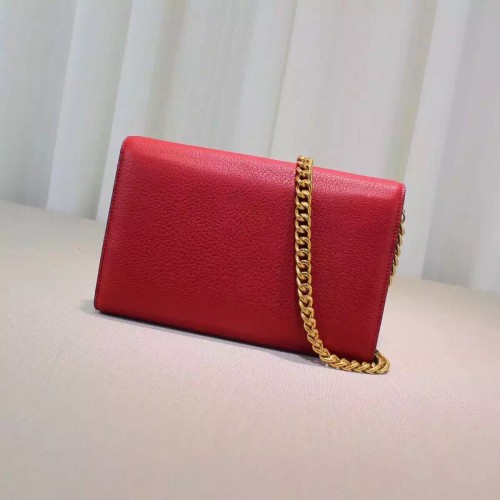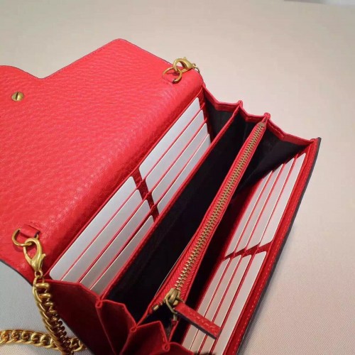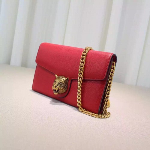 Size:22*13*3.5 cmA feline metal detail sits on the front of this leather chain wallet. Made in our fine grain leather, noted for its shine and softness.Antique gold metal detailMade in ItalyFeline metal detailRemovable chain shoulder strap Snap closureSixteen card slots and two bill compartmentsThree separate interior compartmentsZip coin pocket