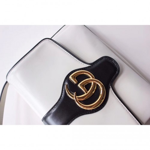 The medium Arli shoulder bag is designed in a bold black and white combination for Pre-Fall 2019. The front flap is enriched with the Double G hardware in shiny gold-toned metal—a House code brought back from the 1970s archives. The retro-inspired silhouette was first presented in the Cruise 2019 fashion show, revealed in the evocative setting of the Roman necropolis of Promenade des Alyscamps, in the French town of Arles—which gives the name to the line.