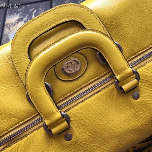 Defined by its soft yellow leather construction and two-toned Interlocking G detail, this backpack speaks to Gucci’s fascination with the idea of hybridization, combining multiple functions into one to create a multifaceted design. Equipped with an additional side top handle, the style can be worn as a long tote, while the shoulder straps can be doubled, transforming the backpack into a duffle. The leather is specially treated for a slightly worn effect that lends to its vintage appearance, recalling the '70s era.