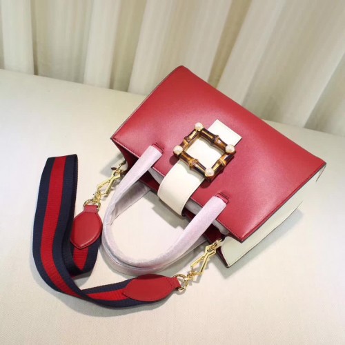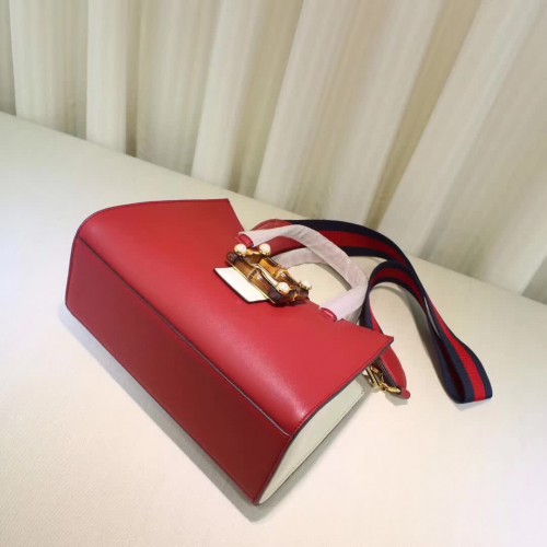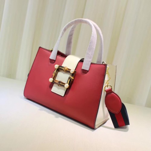 Gucci Bamboo Buckle With Pearl Top Handle Bag 453756 Red 2017