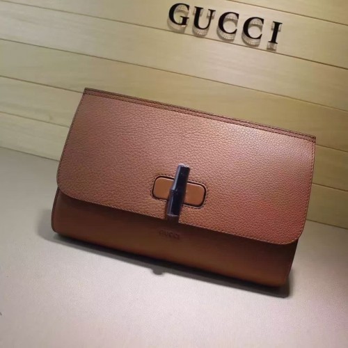 Gucci Bamboo Daily leather clutch 387220 2016 in coffee