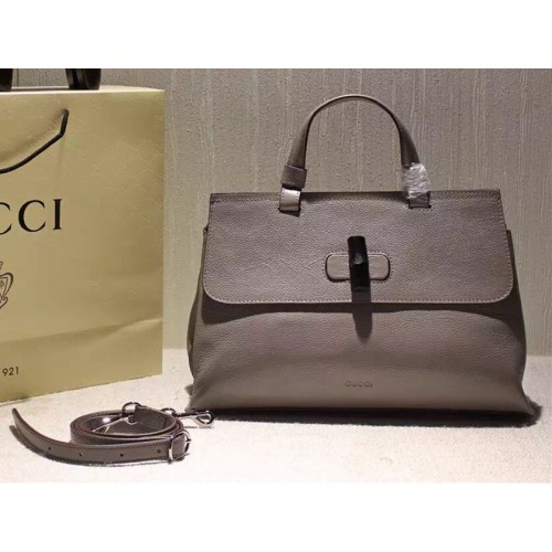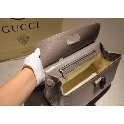 Gucci Bamboo Daily leather top handle bag 392013 GraySKU:c16-21Size:33cm