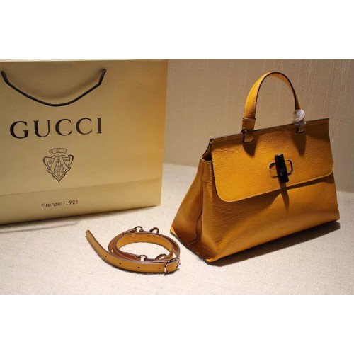 Gucci Bamboo Daily leather top handle bag 392013 YellowSKU:c16-18Size:33cm
