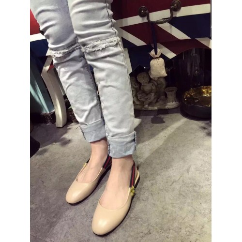 Gucci Beige Bayadere Leather Slingback Flat