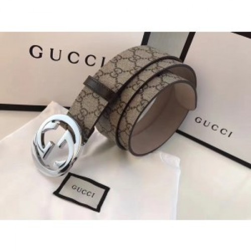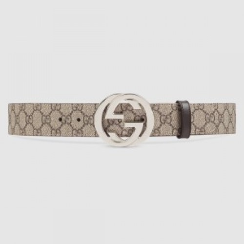 Gucci Beige/ebony GG Supreme Belt With G Buckle