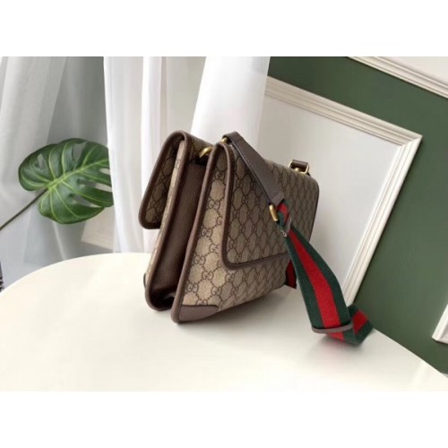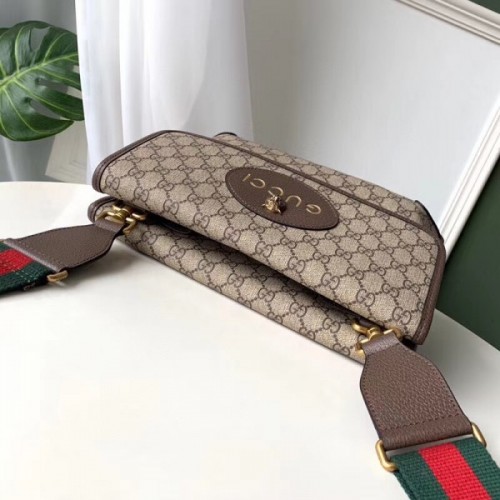 The GG Supreme messenger bag has a retro influenced design. A compartmentalized construction features a flap closure on each side. The center open compartment can be opened using the magnetic gussets.