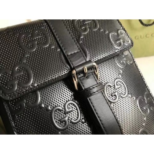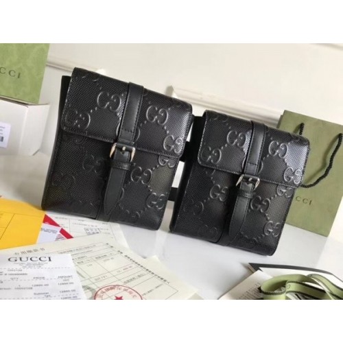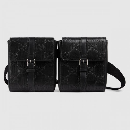 The coveted belt bag design is reimagined with two detachable pouches Introduced in GG leather—a new material for Pre-Fall 2020 that plays with texture, embossing the House emblem onto a perforated black leather base.