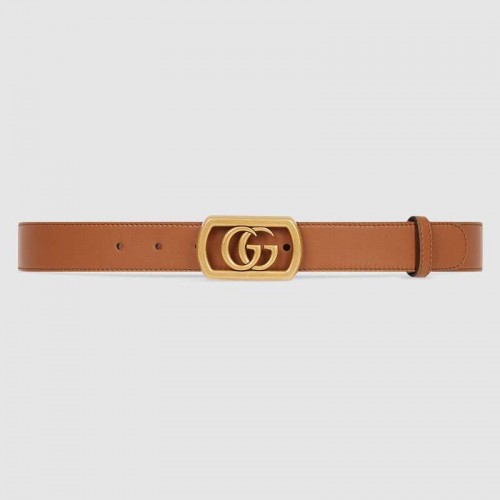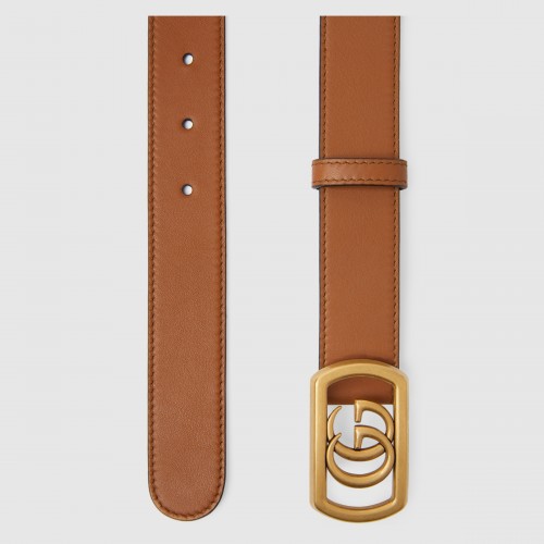 A cuir leather belt defined by the Double G buckle. Inspired by an archival piece, the emblematic hardware is enhanced by a framed design.