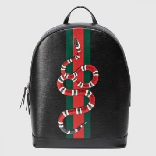 Gucci Black Backpack Web And Kingsnake Print Leather