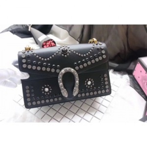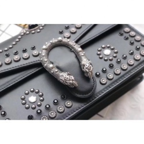 Gucci Black Dionysus Small Studded Shoulder Bag