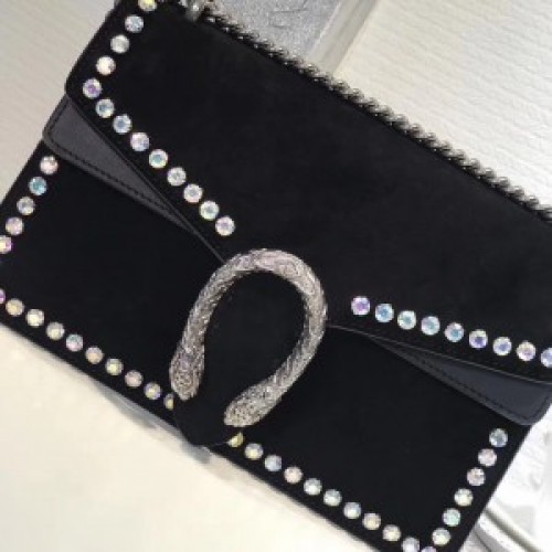 Gucci Black Dionysus Suede Crystal Small Shoulder Bag