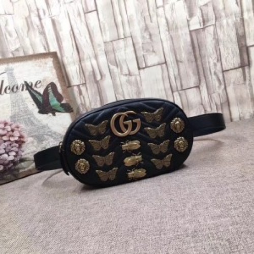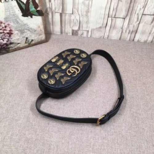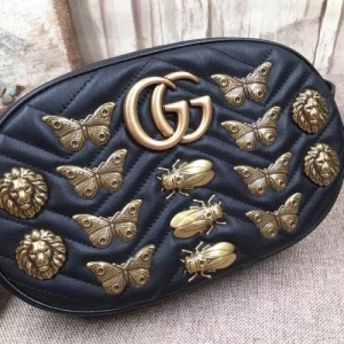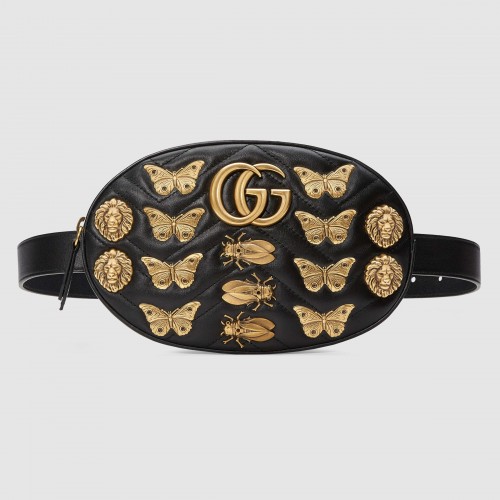 Gucci Black GG Marmont Animal Studs Belt Bag