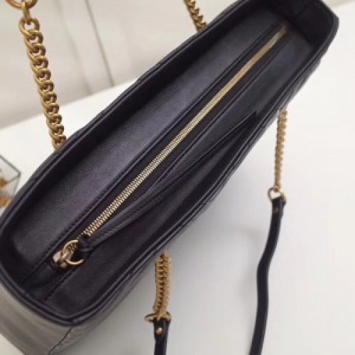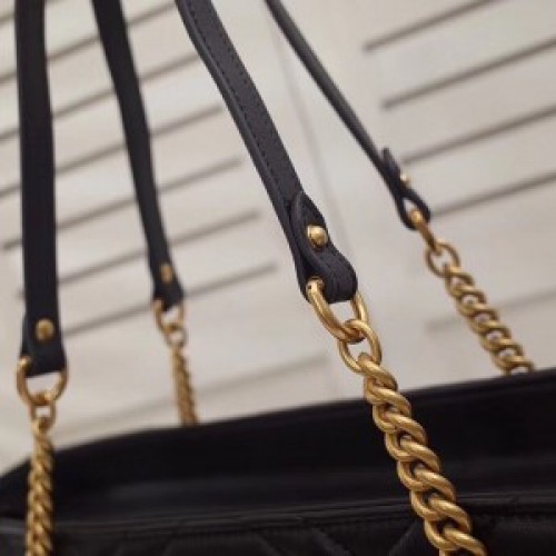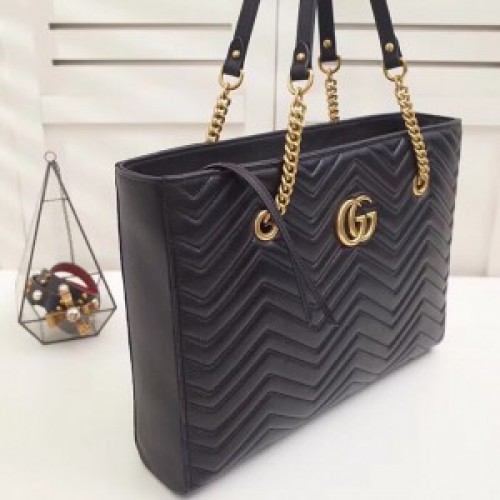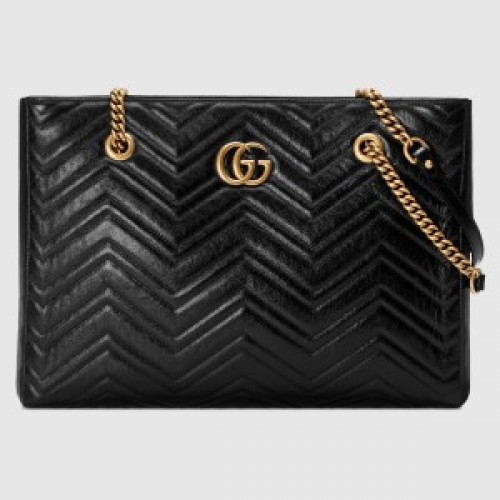Inspired by the Running G belt buckle from Gucci's 70s archives, the Double G has become the GG Marmont world's trademark. For Pre-Fall 2018, new shapes like this medium tote bag are presented in a specially treated matelassé chevron leather, finished with a vintage effect.