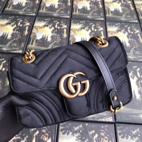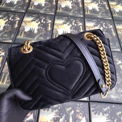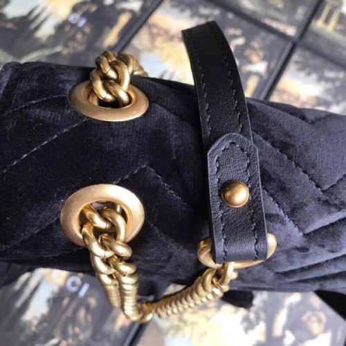 Gucci Black GG Marmont Mini Velvet Shoulder Bag